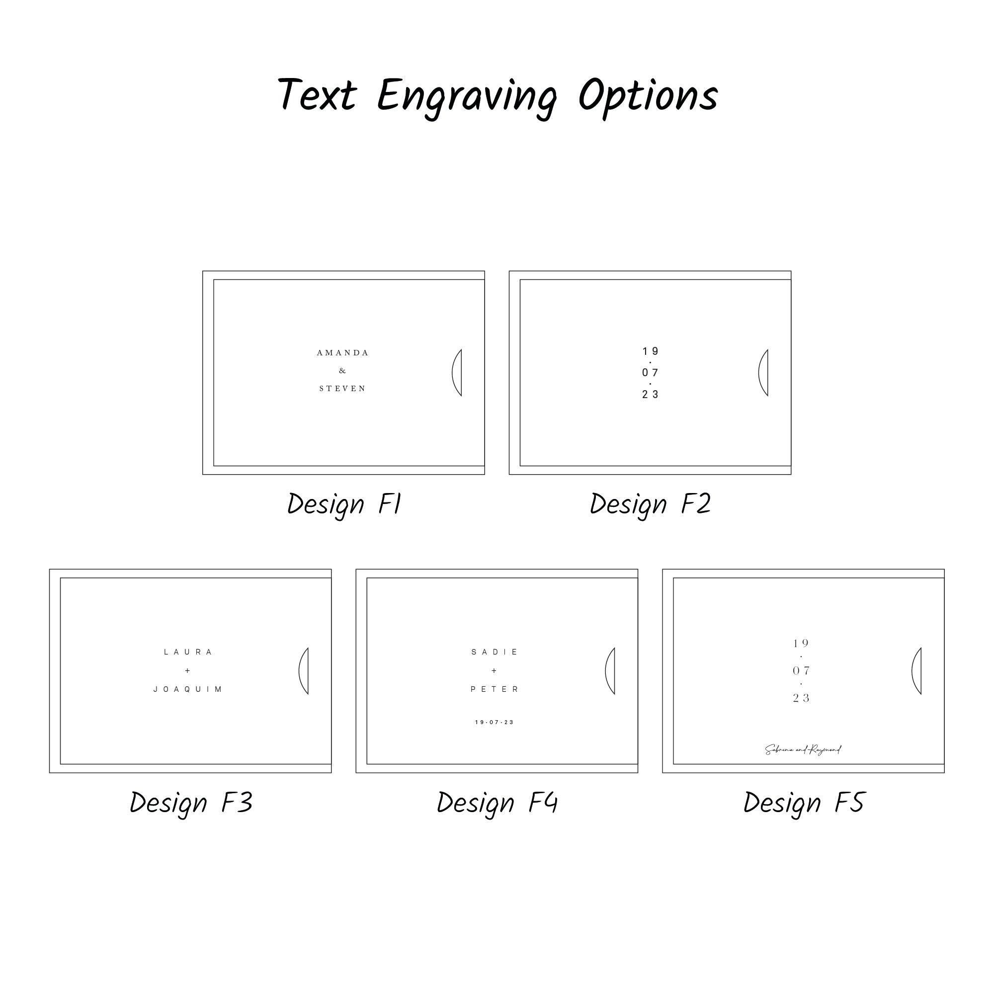 Customize the lid of your box with names, dates, or a special message. Just send us your text or design, and we’ll create a personalized look. If no font is specified, we’ll choose one that best fits your design.